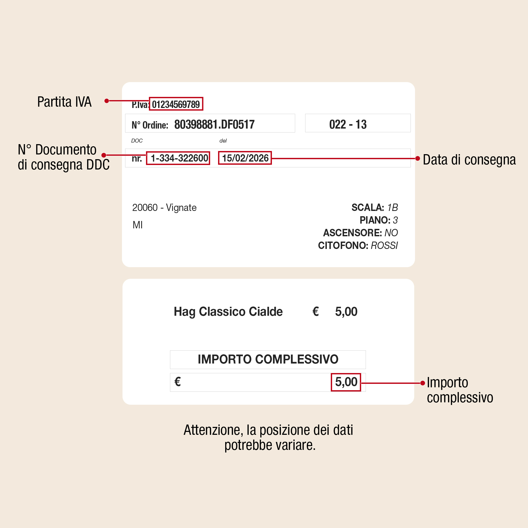 Per partecipare è necessario essere in possesso dello scontrino d’acquisto o del documento di consegna, comprovante l’acquisto di un prodotto HAG, Splendid o L’Or.